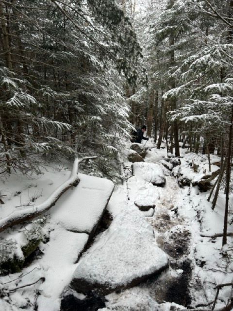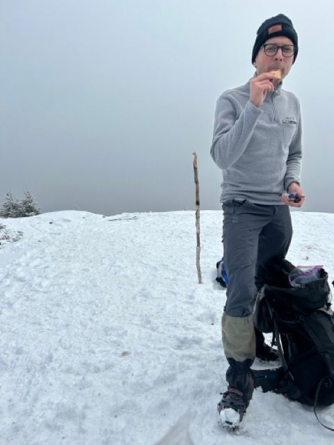 Started with a little bit of snow on the ground. More and more the higher up we got. Covered with snow at the summit. A lot of "climbing" and ice the last mile up. Did not eat a proper breakfast and got a cramp just below the top. Very nice hike and some nice views on the way. A lot of fog at the summit, so no view.